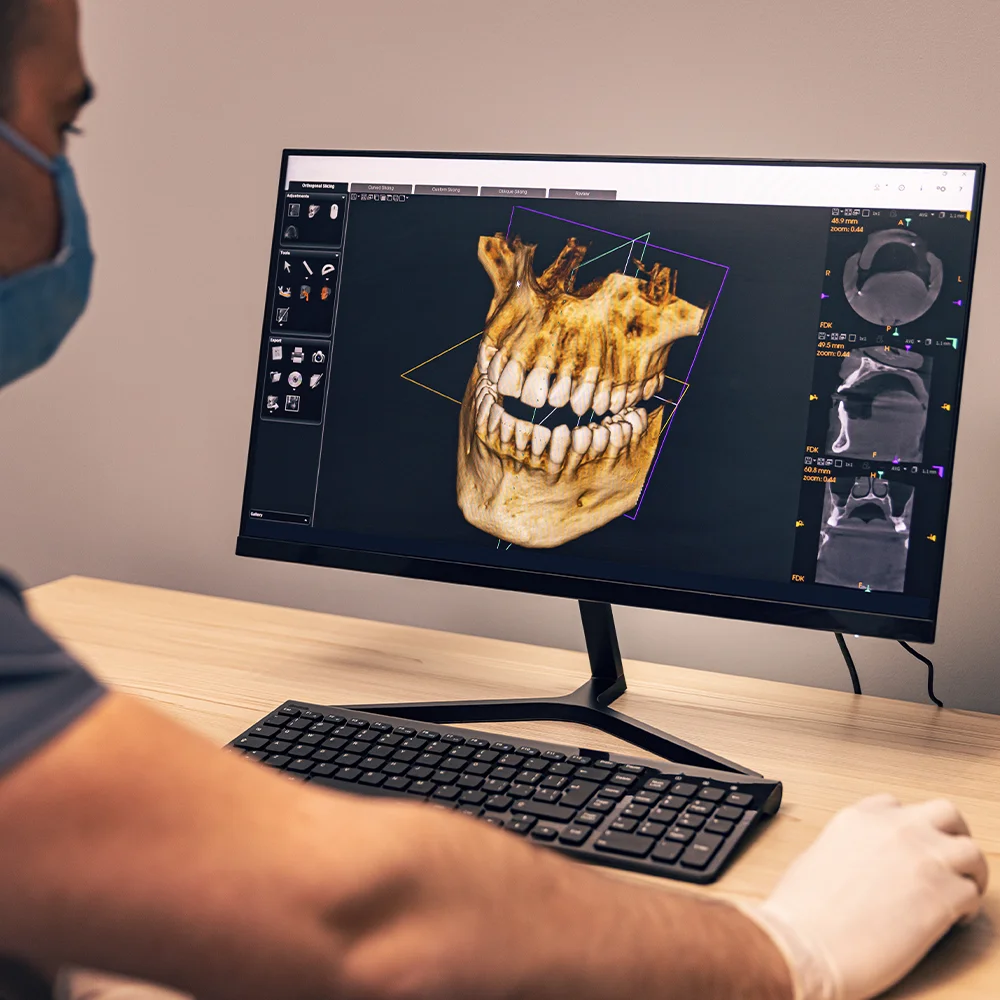 Panoramik ve periapikal röntgen ile pozlanamayan alanları görüntüleyebilirsiniz. Çekilen görüntüden koronal, aksiyal, sagital (cross section) kesitler alıp daha detaylı teşhis yapabilirsiniz.